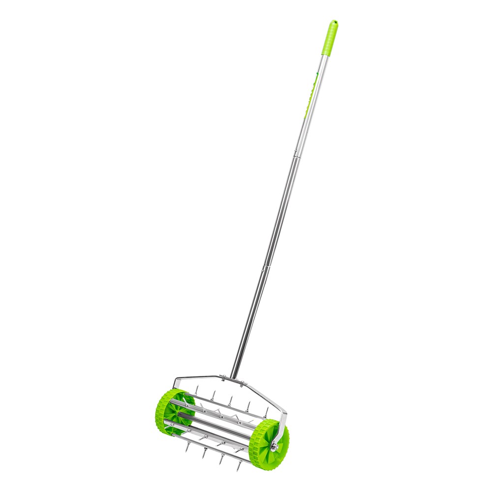 - Эффективная работа без лишних усилий — аэратор с острыми шипами позволяет ускорить процесс естественного роста газона без использования удобрений.