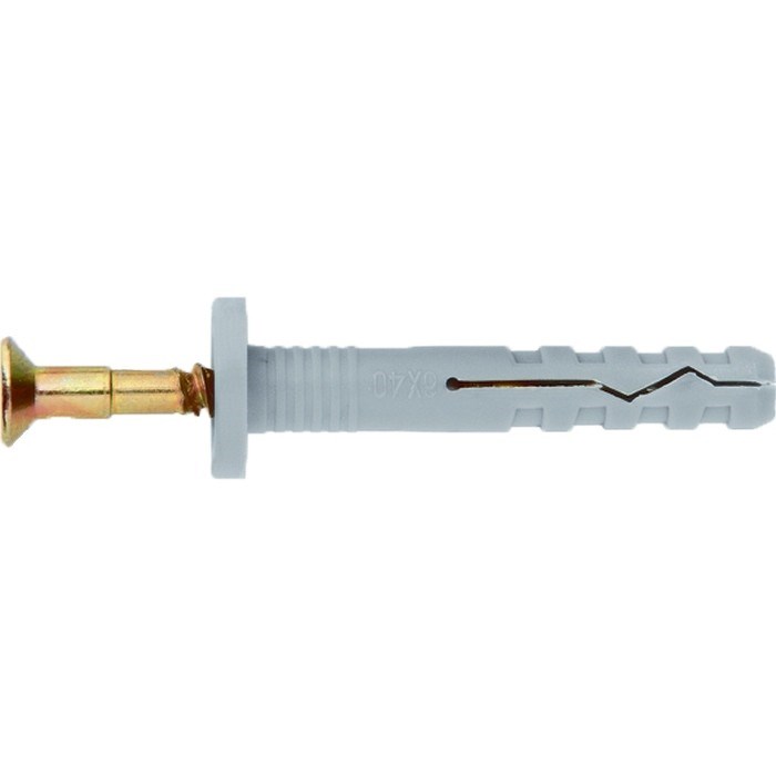 - Простой монтаж — гвоздевой дюбель забивают молотком, специальные ребра обеспечивают прочную фиксацию в материале, саморезы типоразмера PZ2 можно закручивать и откручивать обычной отверткой без использования шуруповерта