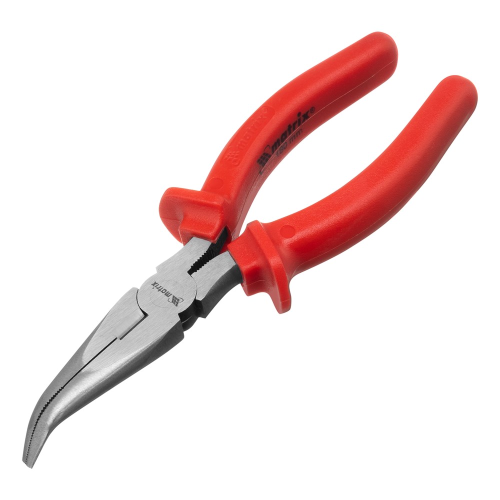 Длинногубцы изогнутые Econom, 180 мм, шлифованные, пластмассовые рукоятки Matrix