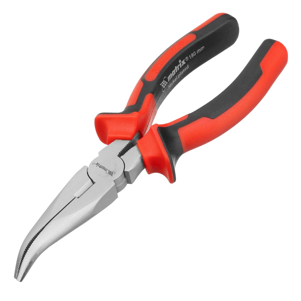 Длинногубцы изогнутые Nickel, 180 мм, никелированные, двухкомпонентные рукоятки Matrix