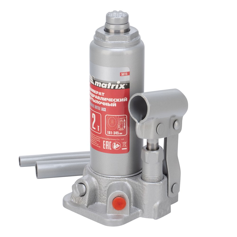 НаименованиеДомкрат гидравлический бутылочный, 2 т, высота подъема 181-345 мм Matrix
