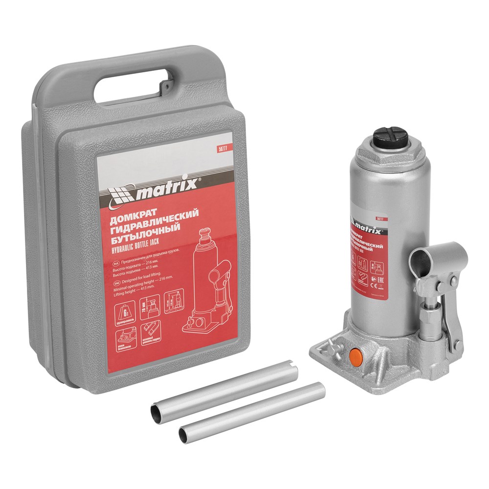 Домкрат гидравлический бутылочный, 6 т, h подъема 216-413 мм, в пластиковом кейсе Matrix