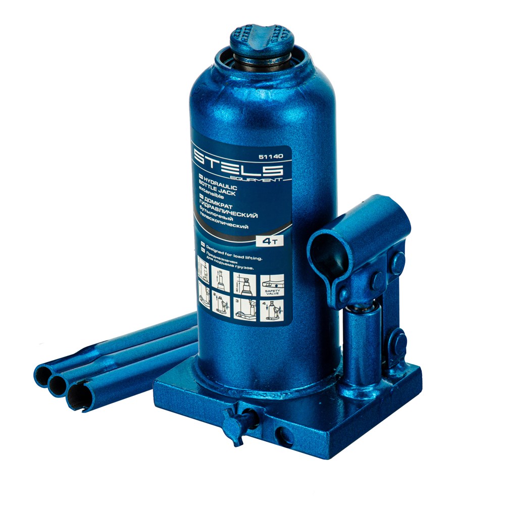 Гидравлический бутылочный телескопический домкрат Stels 51140 используется для поднятия грузов весом до 4 т с на высоту 190-480 мм. Не требует больших усилий и оптимален для автомобилей с большим клиренсом. Домкрат можно использовать в гараже для самостоятельного ремонта машины или в автосервисе для решения профессиональных задач.