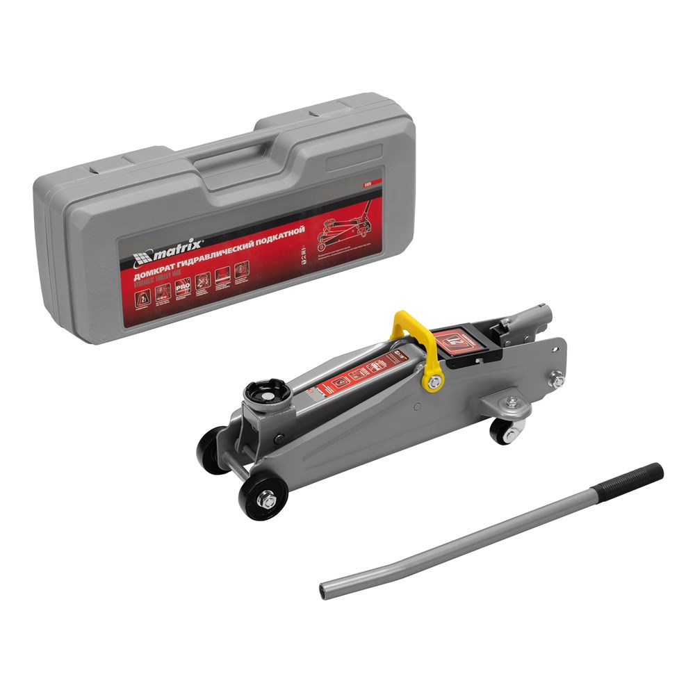 НаименованиеДомкрат гидравлический подкатной, 2 т, высота подъема 135-385 мм, в пластиковый кейсе Matrix