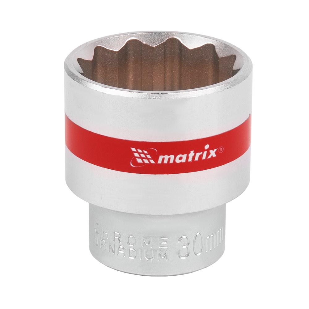Головка торцевая, 30 мм, двенадцатигранная, CrV, под квадрат 1/2, хромированная Matrix
