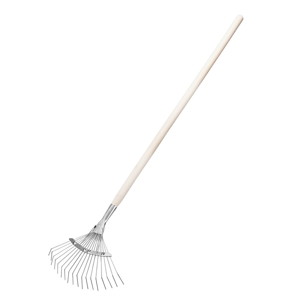Грабли веерные стальные, 350 х 1450 мм, 18 круглых зубьев, деревянный черенок, Сибртех