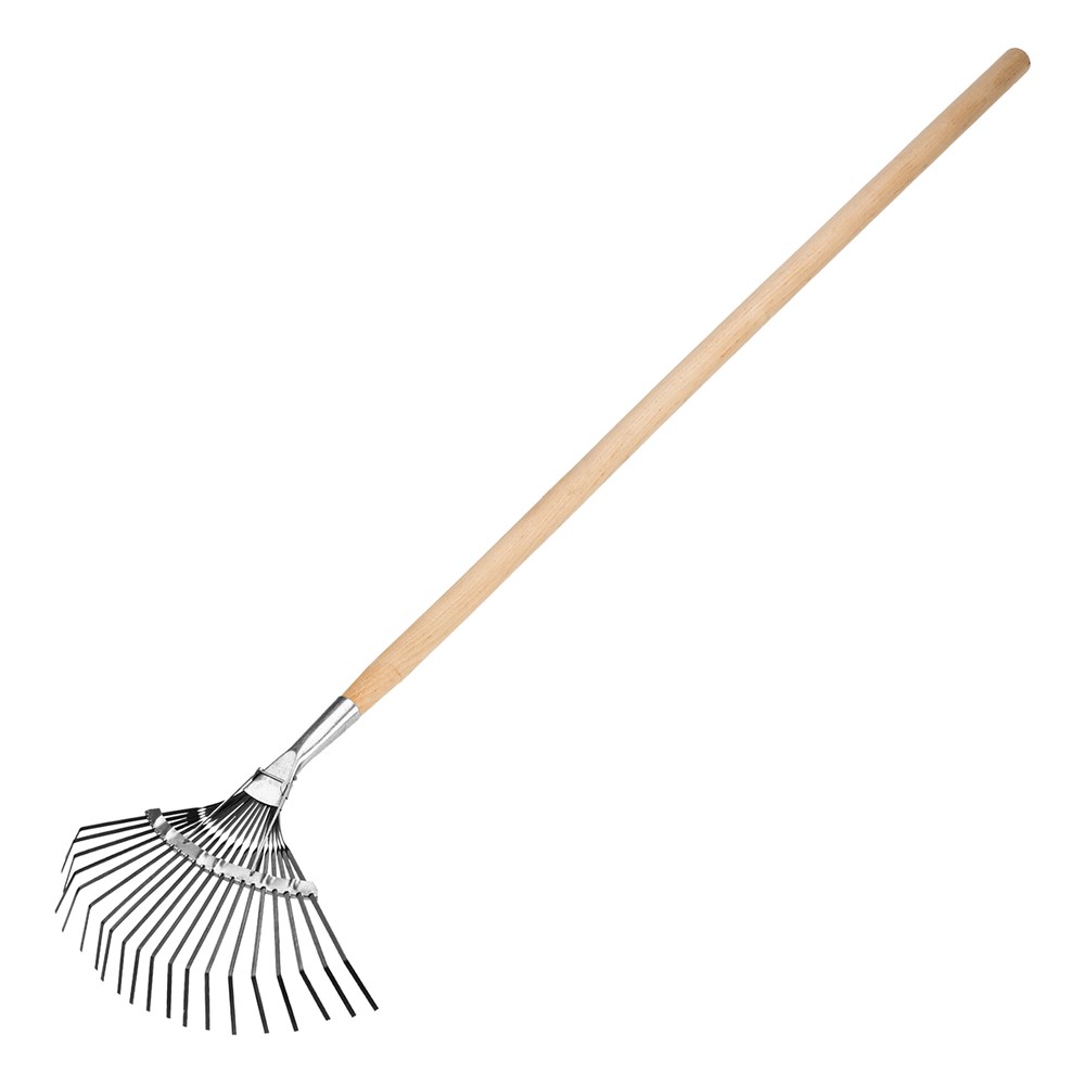 Грабли веерные стальные, 385 х 1450 мм, 20 плоских зубьев, деревянный черенок, Сибртех