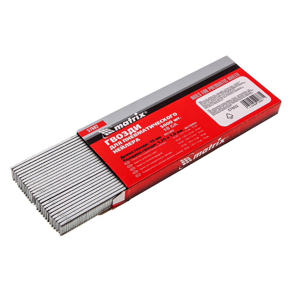 Гвозди для пневматического нейлера, длина 10 мм, ширина 1.25 мм, толщина 1 мм, 5000 шт Matrix