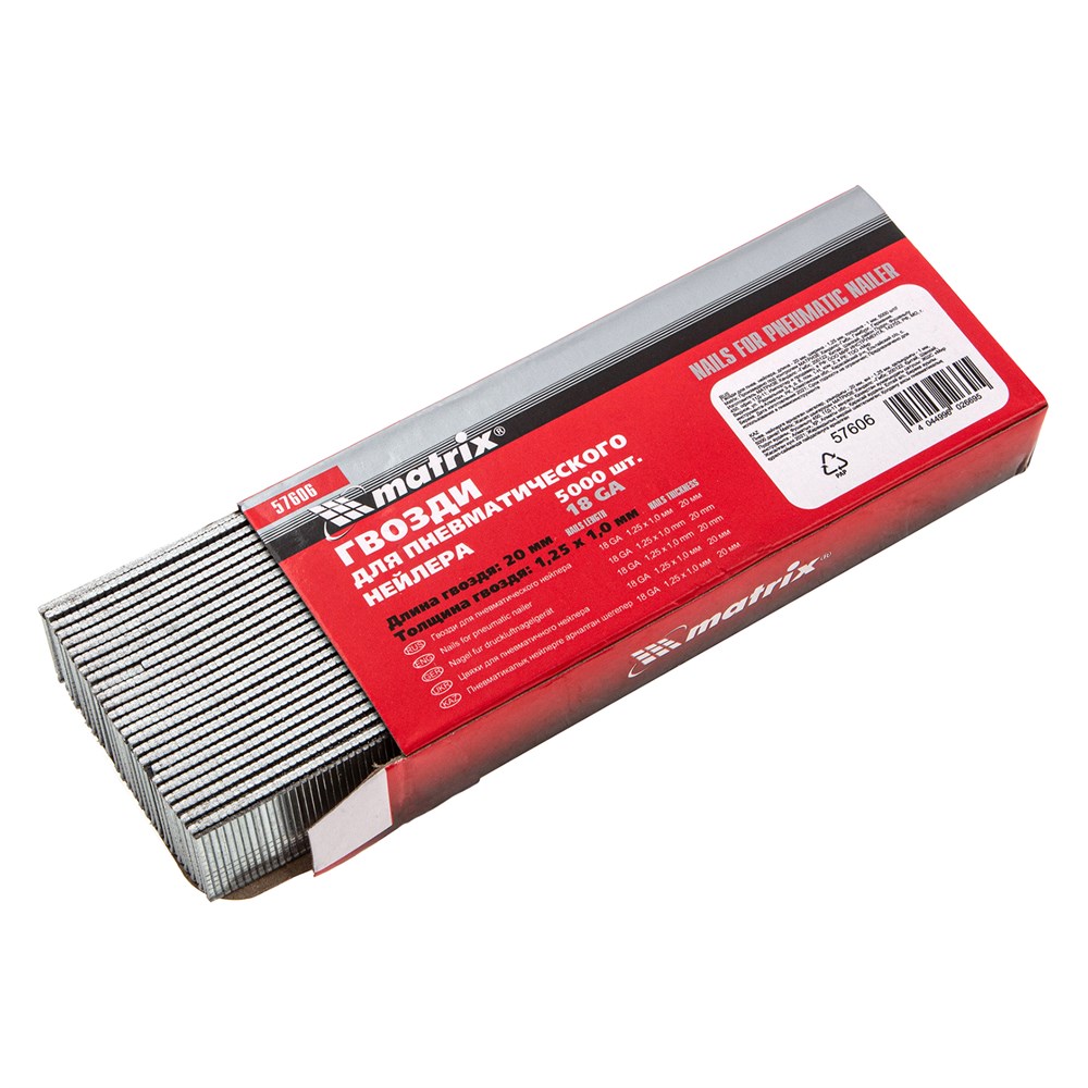 Гвозди для пневматического нейлера, длина 20 мм, ширина 1.25 мм, толщина 1 мм, 5000 шт Matrix