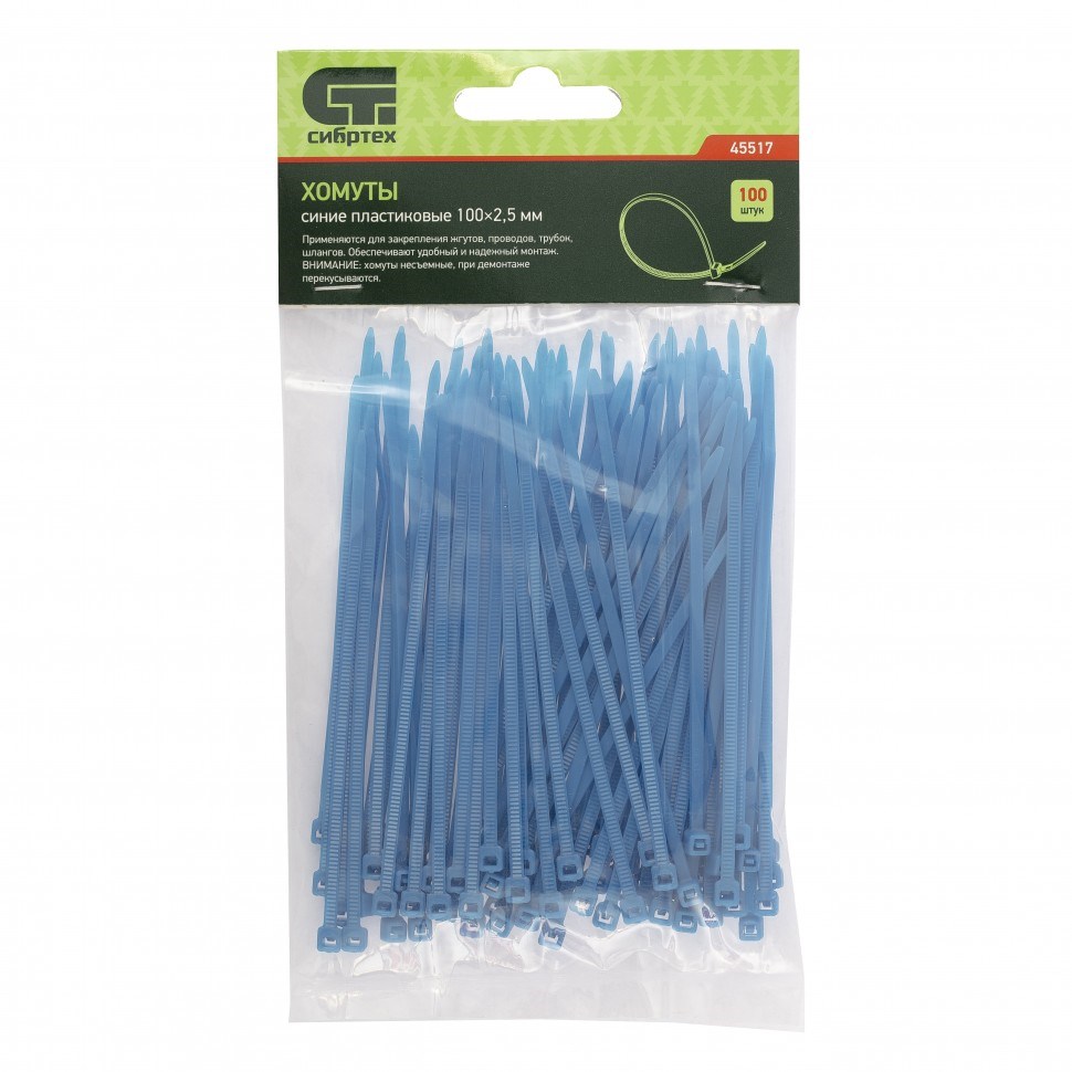 Хомуты, 100 x 2.5 мм, пластиковые, синие, 100 шт Сибртех