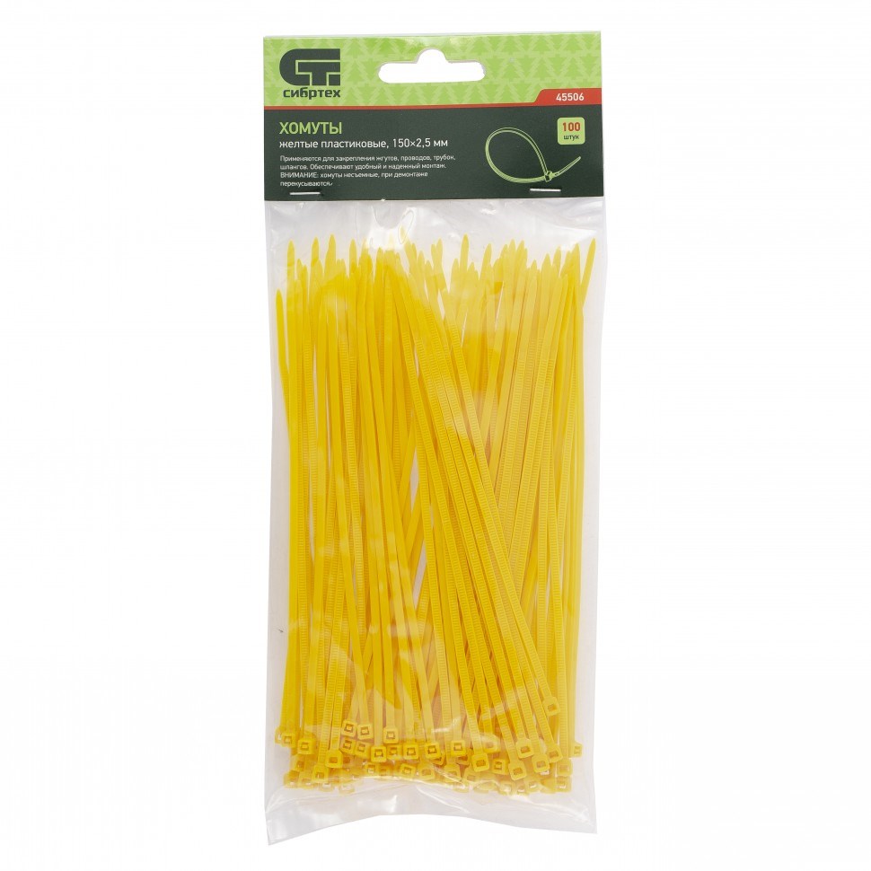 Хомуты, 150 x 2.5 мм, пластиковые, желтые, 100 шт Сибртех