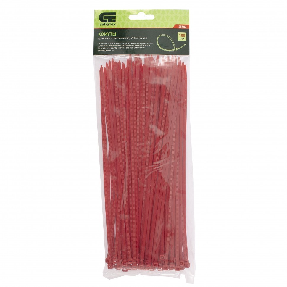 Хомуты, 250 x 3.6 мм, пластиковые, красные, 100 шт Сибртех