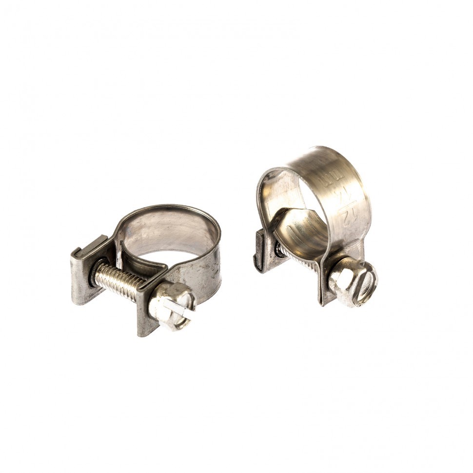 Винтовые металлические хомуты Сибртех MINI 475043 из нержавеющей стали (W4), шириной 9 мм, 2 шт. в упаковке, имеют диаметр охвата 12-14 мм и предназначены для обжима шлангов и патрубков. Затягиваются винтами, что обеспечивает надежность крепления. Используются при прокладке коммуникаций, в машино- и станкостроении, их устанавливают в холодильном и пищевом оборудовании.