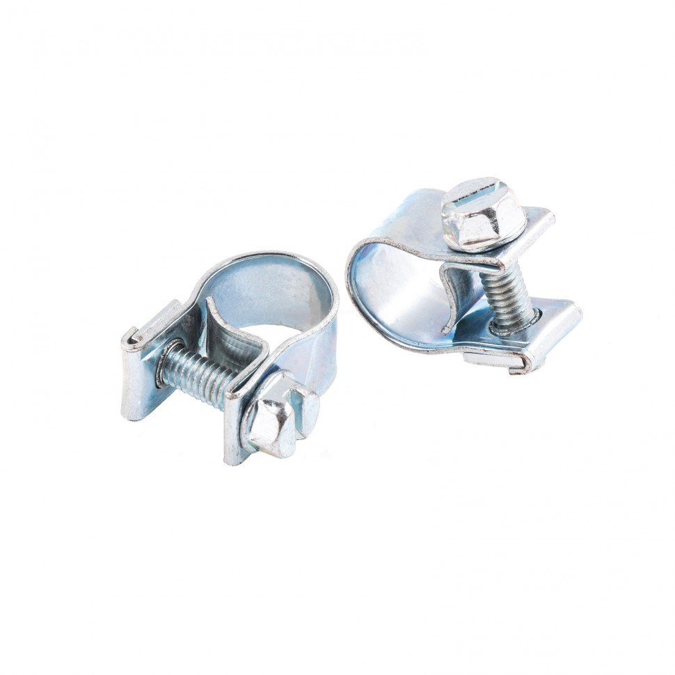 Винтовые металлические хомуты Сибртех MINI 47502 шириной 9 мм, из оцинкованной стали (W1), 2 шт. в упаковке, предназначены для стяжки и закрепления шлангов и патрубков диаметром 9-11 мм. Фиксируются при помощи винтов, что обеспечивает надежность монтажа. Хомуты применяются в машино- и станкостроении, а также для прокладки инженерных сетей.