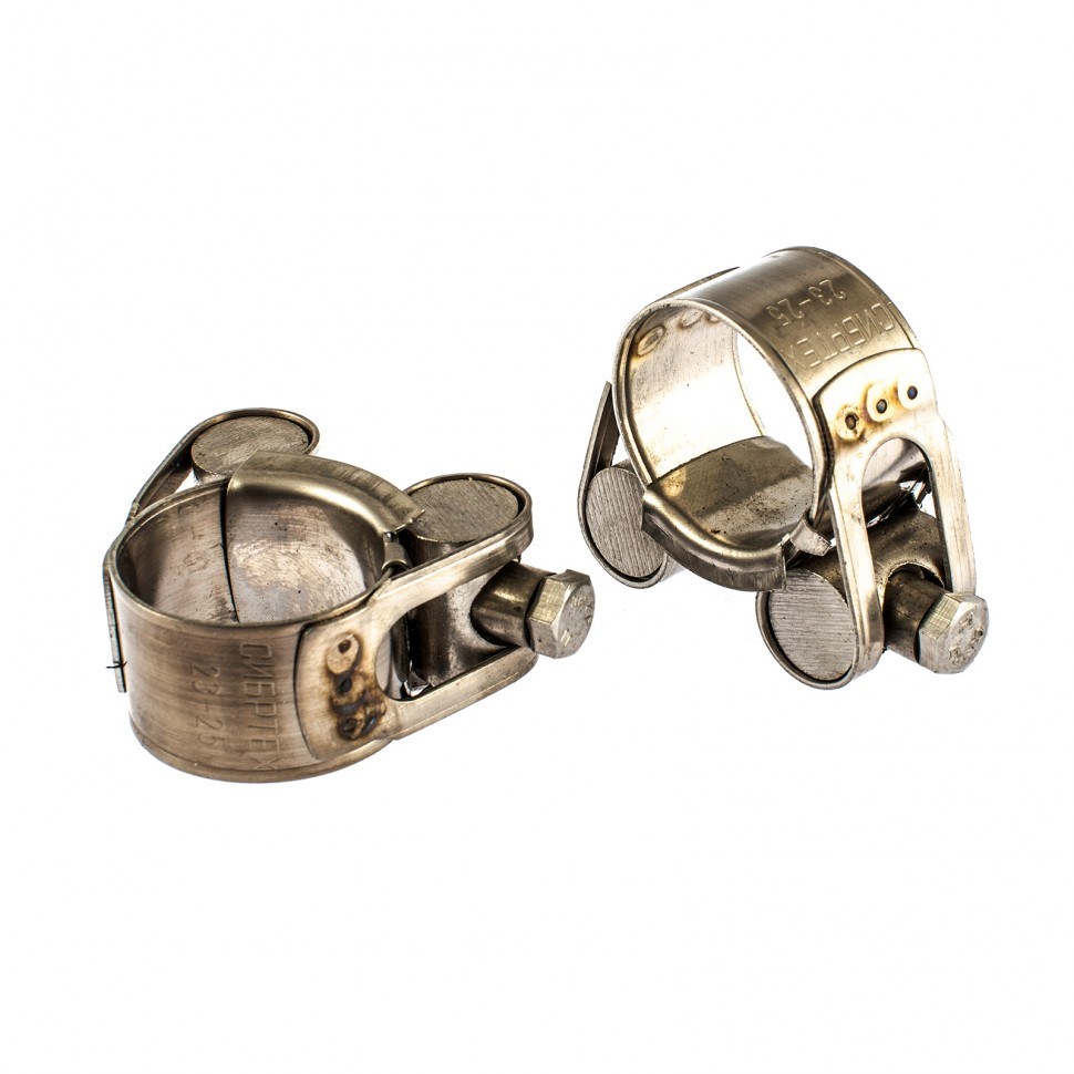 Хомуты металлические, силовые 23-25 мм, ширина 18 мм, шарнирный, W4, 2 шт Сибртех