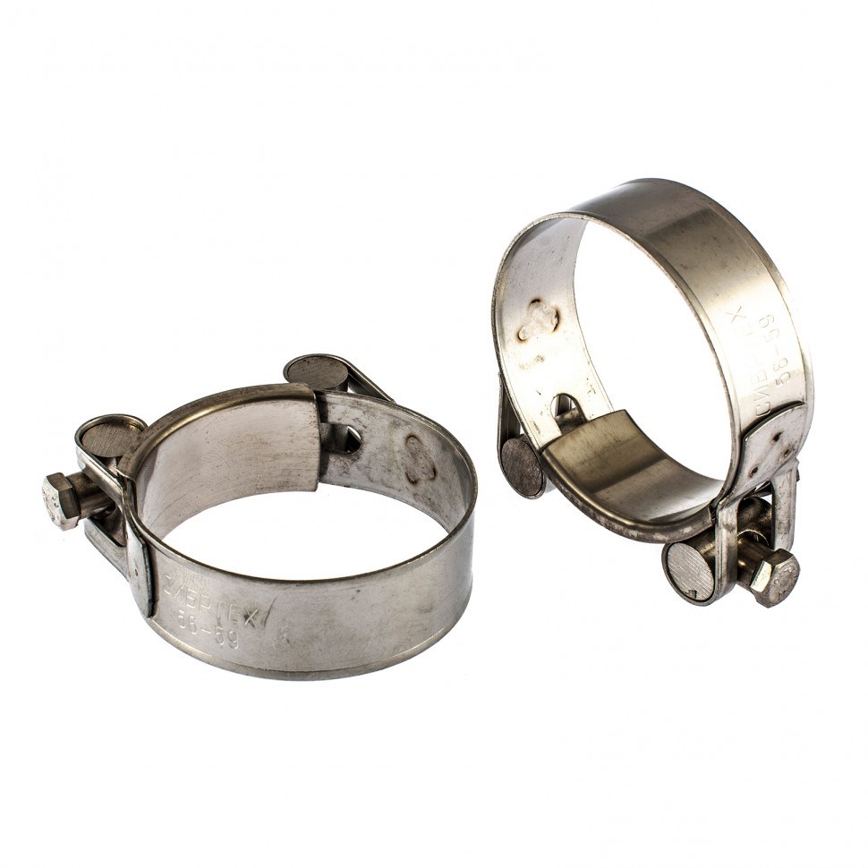 Хомуты металлические, силовые 56-59 мм, ширина 22 мм, шарнирный, W4, 2 шт Сибртех