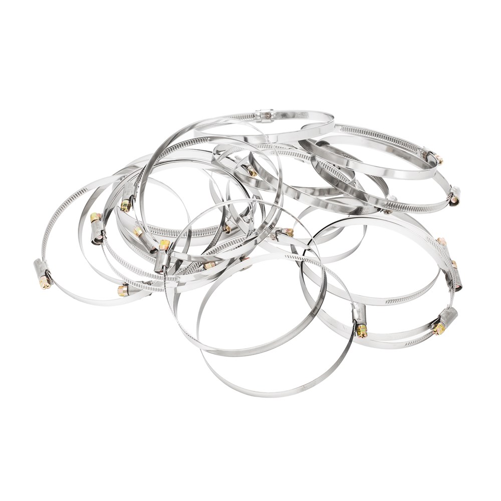 Хомуты Сибртех 47589 из нержавеющей стали, со стандартным болтовым креплением, с диаметом охвата 100-120 мм, шириной 9 мм, 25 шт. в упаковке, — крепежные элементы, применяющиеся для соединения шлангов и труб. Подходят для многократного использования. Хомуты затягиваются винтами, что обеспечивает удобство и надежность фиксации. Могут быть использованы для монтажа трубопроводных систем и обеспечения герметичных соединений в различных инженерных и транспортных системах.