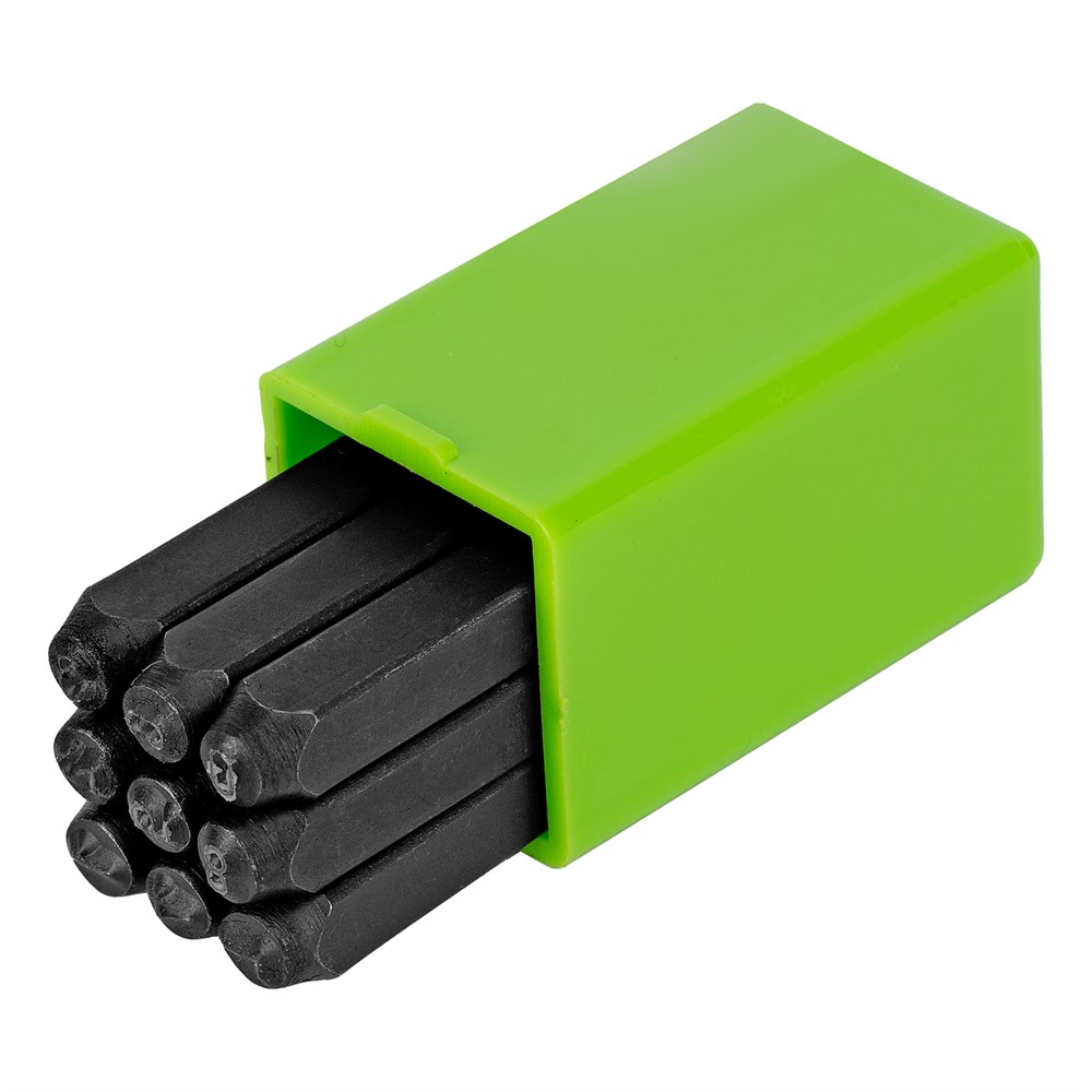 - Удобное хранение и транспортировка — клейма поставляются в комплекте с пластиковым коробом.