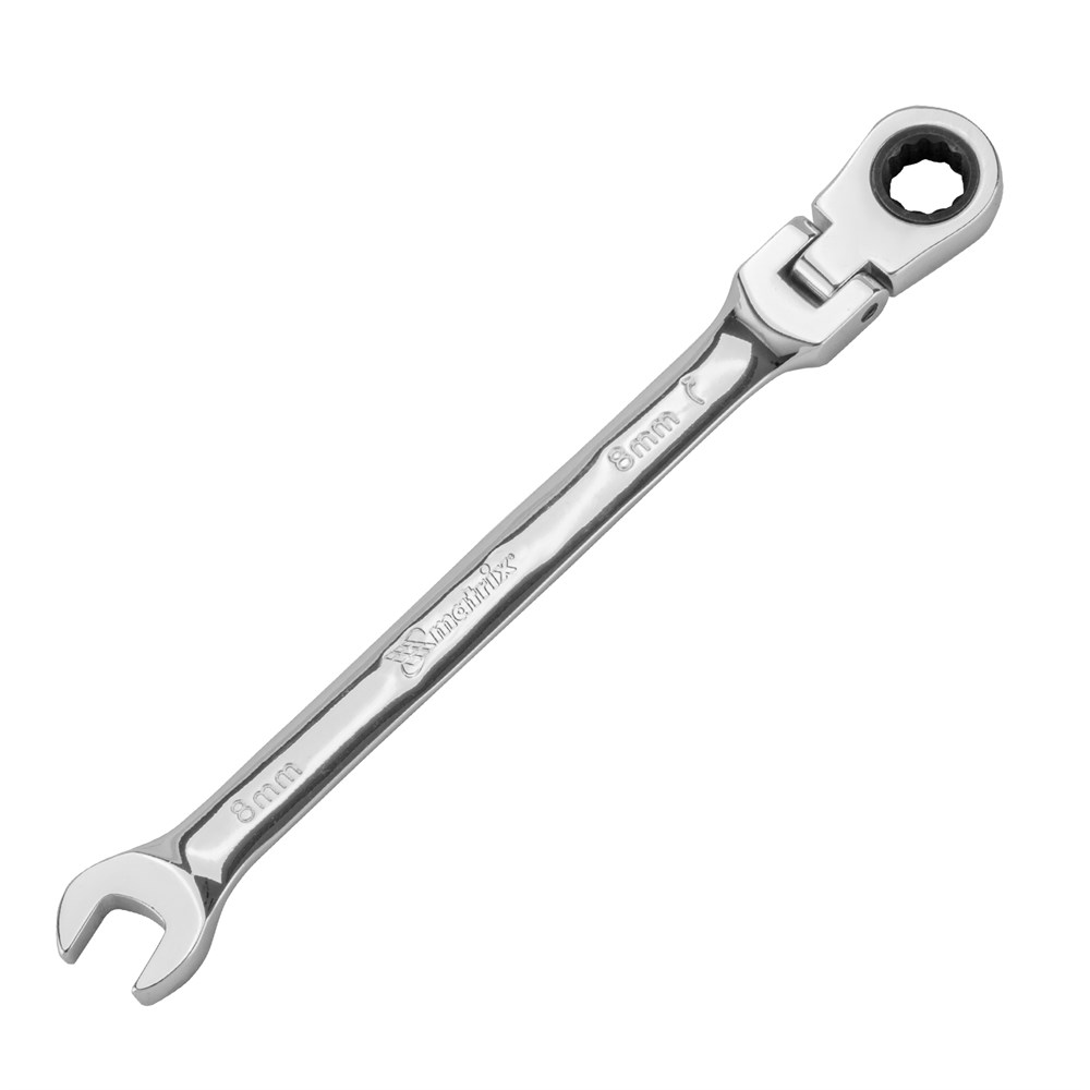 Ключ комбинированный трещоточный, 8 мм, CrV, шарнирный, зеркальный хром Matrix Professional