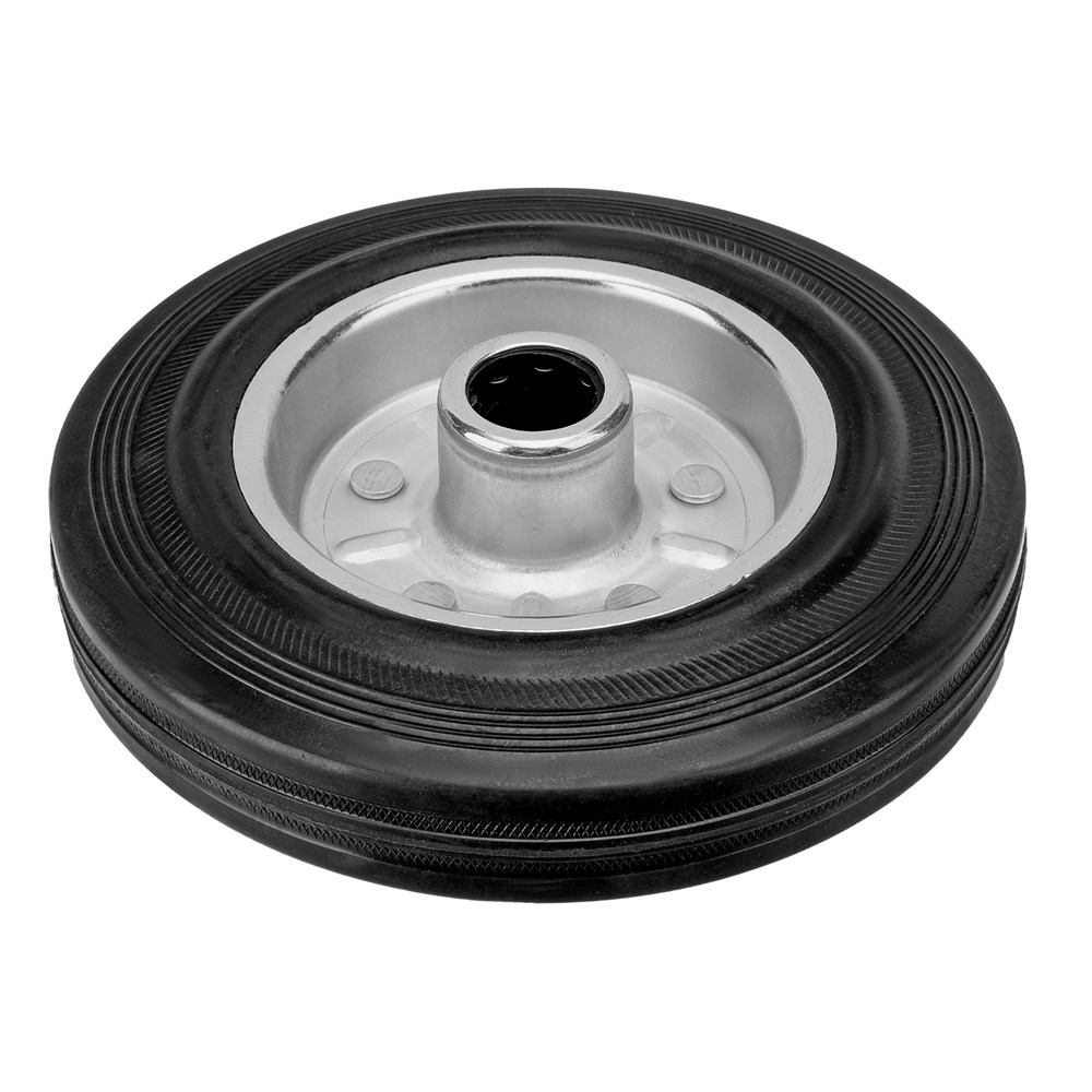 - Универсальность — контактная поверхность выполнена из прочной резины, поэтому колесо может применяться на различных покрытиях, долгое время сохраняя рабочие качества.