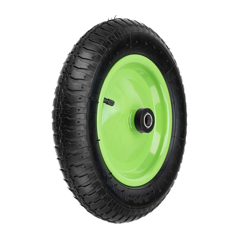 Пневматическое колесо 3.00-8 Сибртех 68972 с длиной оси 90 мм и посадочным диаметром подшипника 20 мм помогает осуществить транспортировку грузов по участку. Подходит к тачкам Сибртех 68962 и 689625. Колесо с двумя стальными шариковыми подшипниками обеспечивает плавный ход тачки даже на неровном грунте.