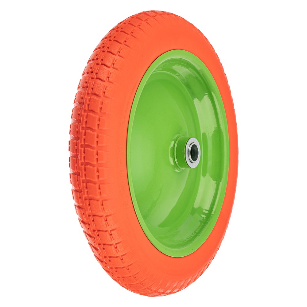 Полиуретановое колесо 3.00-8 Сибртех 689765 с длиной оси 90 мм и диаметром подшипника 20 мм — движущий элемент тачек Palisad 68923, 689233, 68937, Сибртех 689643 и др. Непрокалываемое колесо подходит для использования в самых жестких условиях. В отличие от пневматических колес не требует подкачки, обслуживания и легко отмывается от грязи.