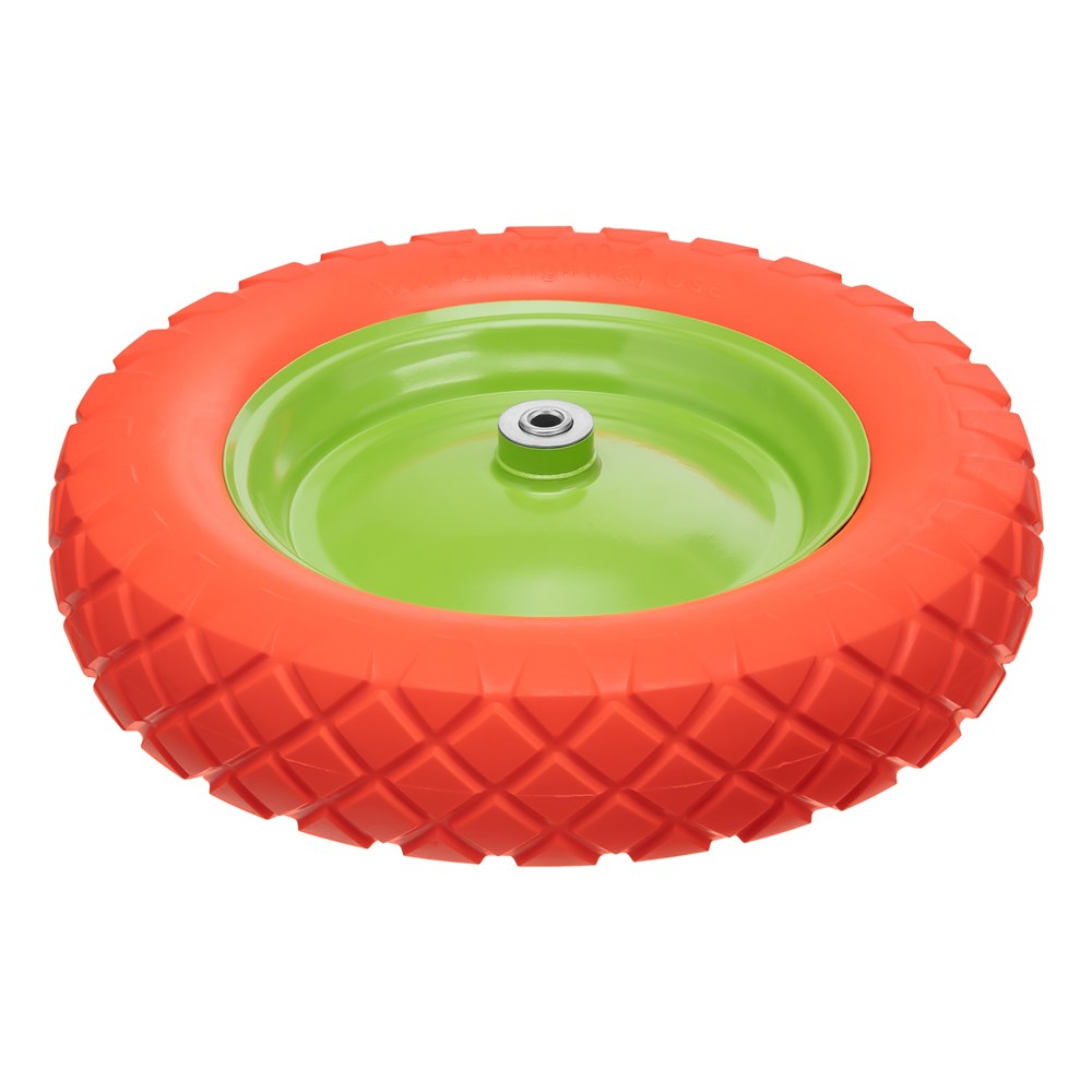 Полиуретановое колесо 4.80/4-8 Сибртех 689785 с длиной оси 90 мм и диаметром подшипника 12 мм — движущий элемент тачек Palisad 68918, 689183, 68935, Сибртех 68968, 689633 и др. Непрокалываемое колесо подходит для использования в самых жестких условиях. В отличие от пневматических колес не требует подкачки, обслуживания и легко отмывается от грязи.