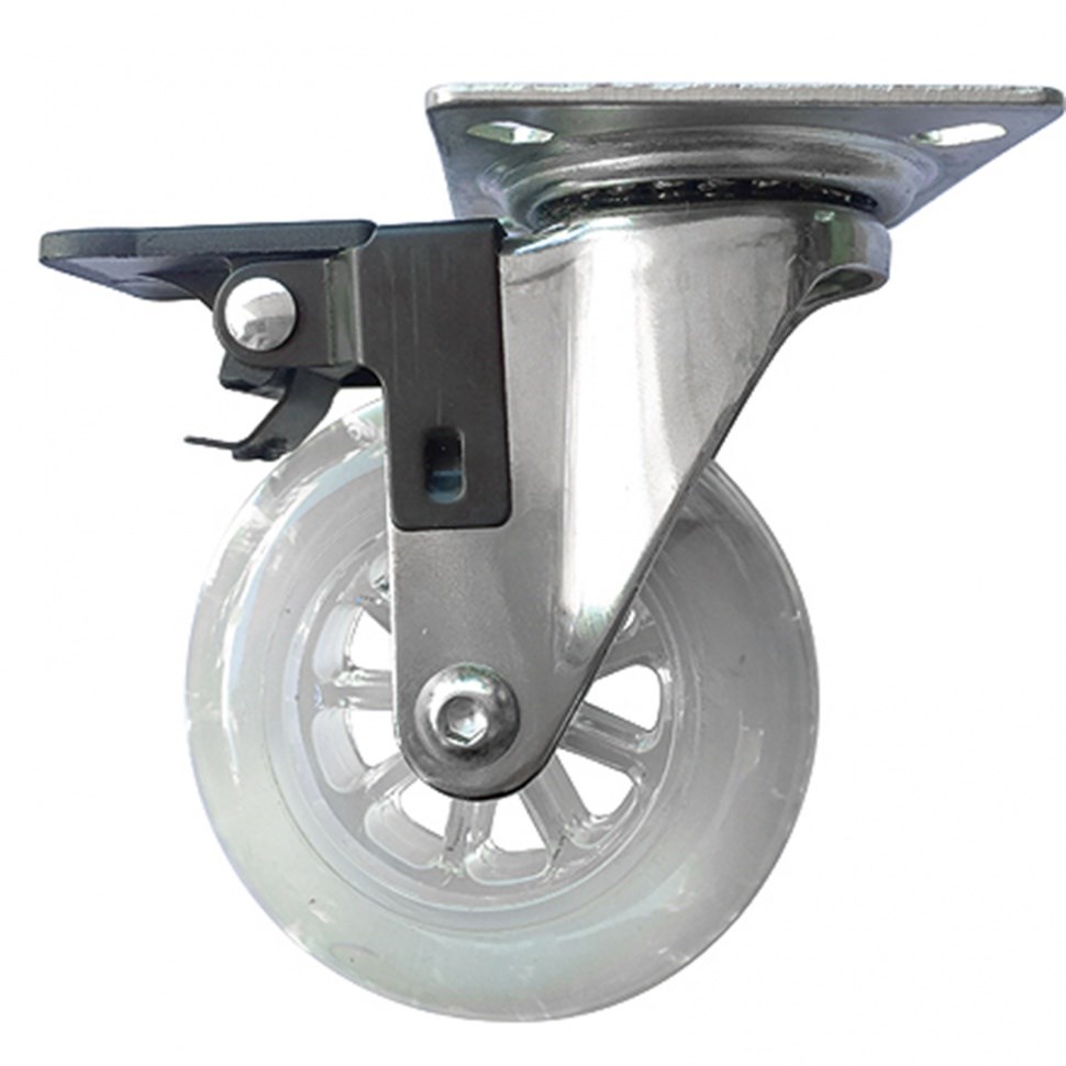 Колесо ПУ прозрачное поворотное с тормозом d-75 мм, крепление платформенное Сибртех