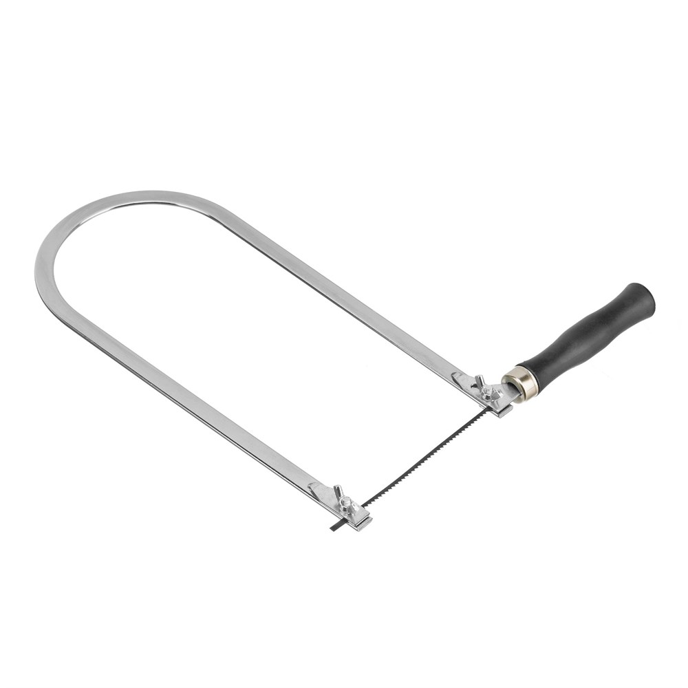 Лобзик Sparta 240245 длиной 300 мм предназначен для выполнения прямо- и криволинейных распилов в фанерных или пластиковых заготовках. Прочная и упругая стальная рама надежно удерживает полотно длиной 120 мм, обеспечивая высокое качество работ. Лобзик используется для ремонта и отделки, а также для художественной резьбы по дереву.
