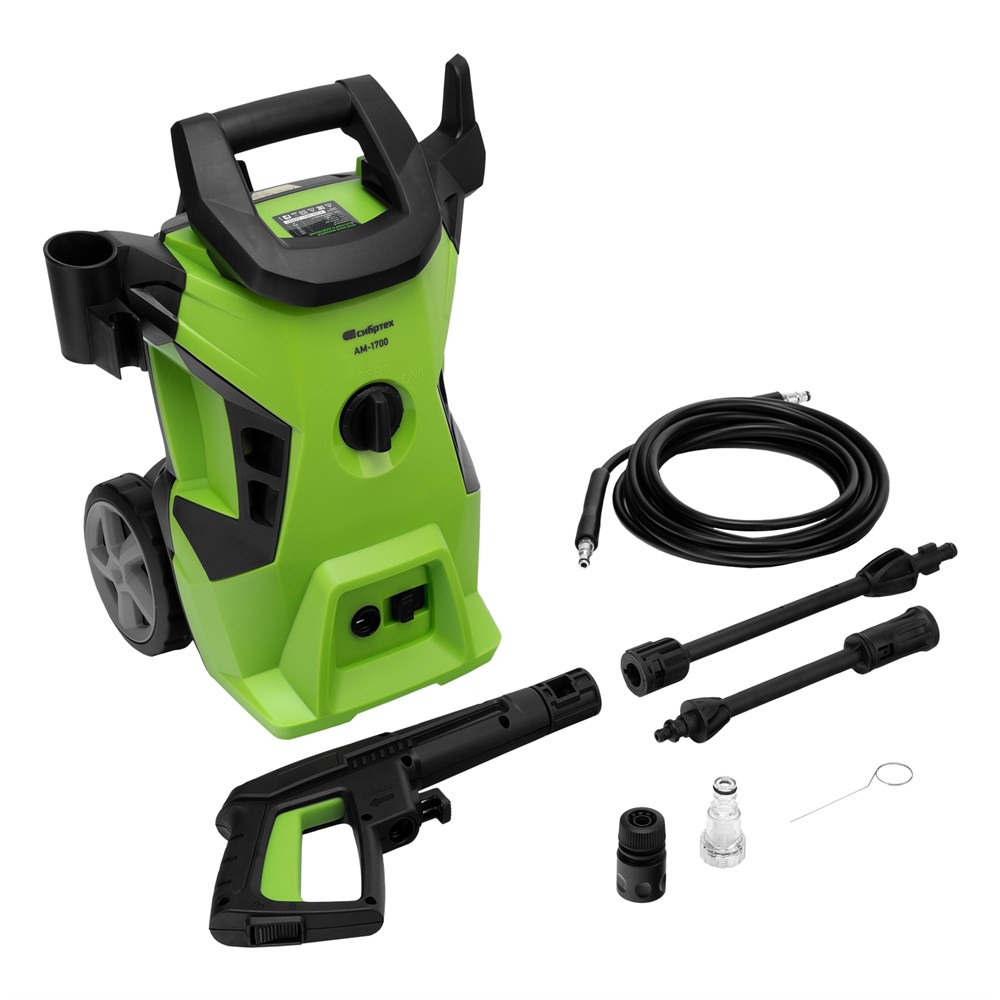 Моечная машина высокого давления АМ-1700, 1700 Вт, 130 бар, 350 л/ч, колесная Сибртех