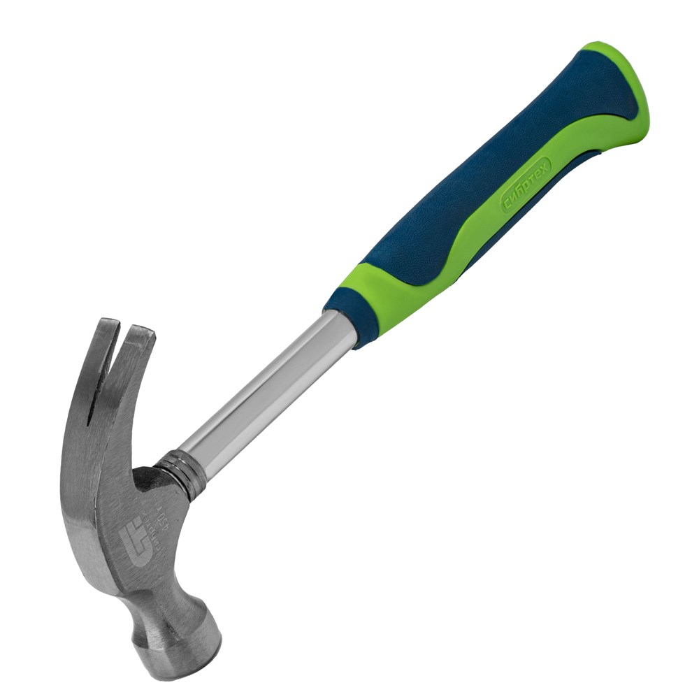 Молоток-гвоздодер, металлическая трубчатая обрезиненная рукоятка, вес 450 г, боек 27 мм Сибртех