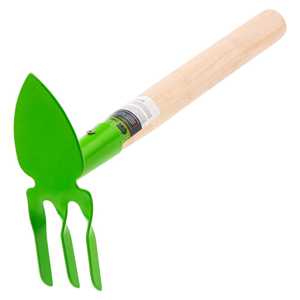 Комбинированная стальная мотыжка Сибртех АГРОНОМ 62306 длиной 380 мм, с деревянной рукояткой, имеет рабочую часть шириной 60 мм и используется для обработки почвы на небольших участках. Рабочая часть представляет собой сочетание лепестка и трезубца. Лепестковая часть рыхлит землю, формирует бороздки и лунки под посадку растений. Витые зубья разбивают земляные комочки, обеспечивая эффективную аэрацию почвы. Инструмент идеально подходит для ухода за клумбами и грядками.