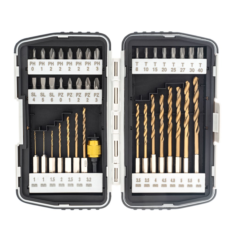 КомплектацияПластиковый кейс - 1 штБита РН0 - 1 штБита РН1 - 1 штБита РН2 - 1 штБита РН3 - 1 штБита РZ0 - 1 штБита РZ1 - 1 штБита РZ2 - 1 штБита РZ3 - 1 штБита Т8 - 1 штБита Т10 - 1 штБита Т15 - 1 штБита Т20 - 1 штБита Т25 - 1 штБита Т27 - 1 штБита Т30 - 1 штБита Т40 - 1 штСверло по металлу 1 мм - 1 штСверло по металлу 2 мм - 1 штСверло по металлу 3 мм - 1 штСверло по металлу 4 мм - 1 штСверло по металлу 5 мм - 1 штСверло по металлу 6 мм - 1 штСверло по металлу 15 мм - 1 штСверло по металлу 25 мм - 1 штСверло по металлу 32 мм - 1 штСверло по металлу 35 мм - 1 штСверло по металлу 45 мм - 1 штСверло по металлу 48 мм - 1 штСверло по металлу 55 мм - 1 штБитодержатель - 1 штДержатель бит - 1 шт