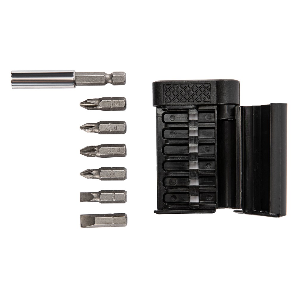 КомплектацияПластиковый кейс - 1 штБиты 25 мм: РН1, РН2, PZ1, PZ2, SL5, SL7 - 6 штБитодержаель 1/4" - 1 штДержатель бит - 1 шт