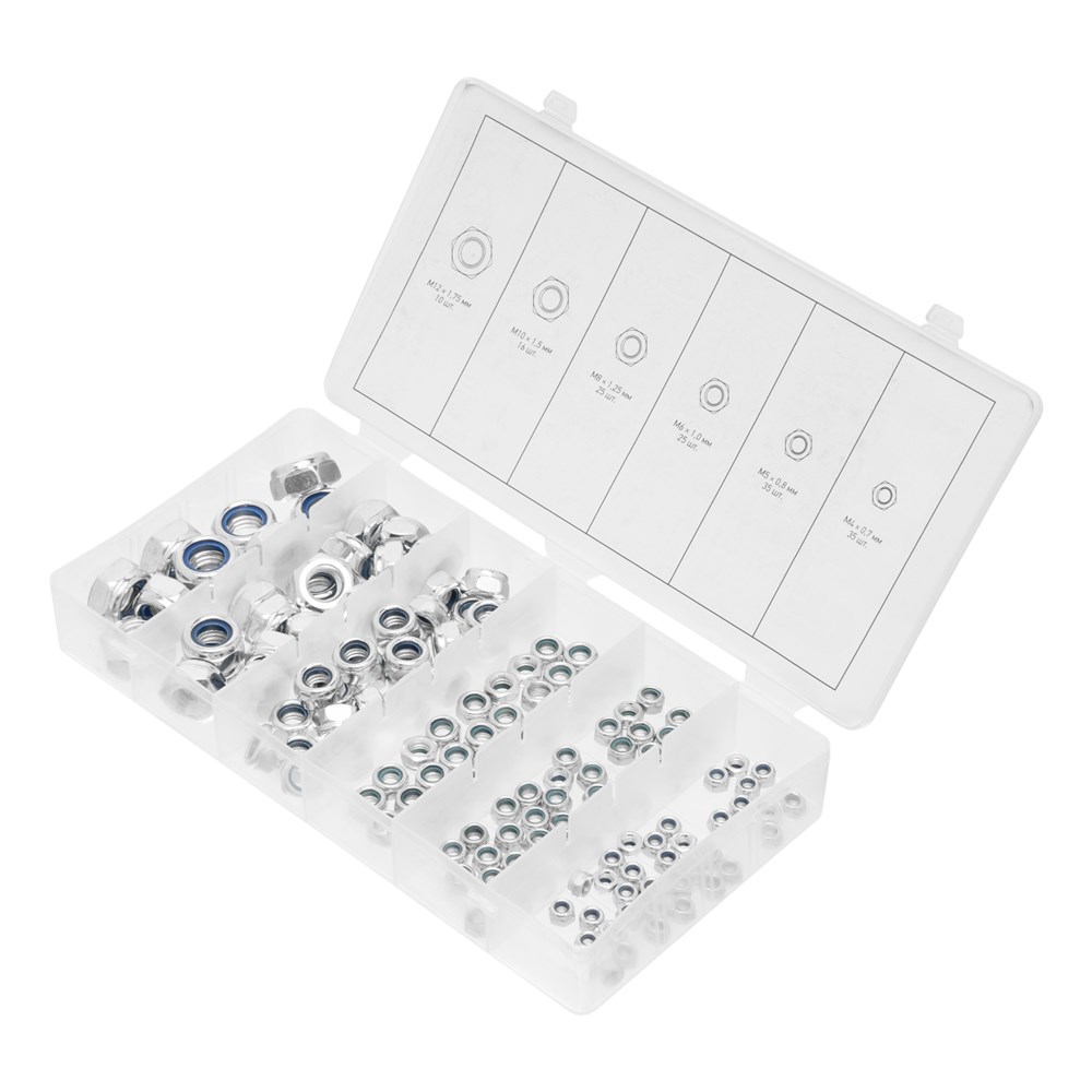 Набор гаек М4, М5, М6, М8, М10, М12, самоконтрящиеся, с Нейлоновой вставкой, 146 предметов Сибртех