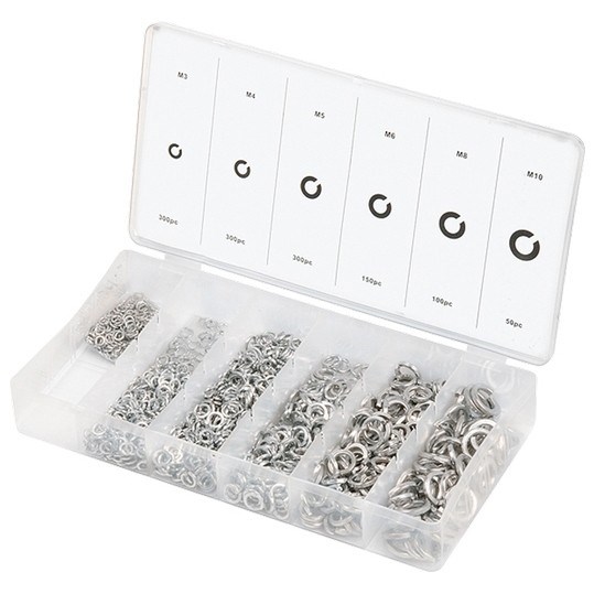 КомплектацияПластиковый кейс - 1 штШайбы-гроверы: М3 - 300 штМ4 - 300 штМ5 - 150 штМ6 - 100 штМ8 - 100 штМ10 - 50 шт