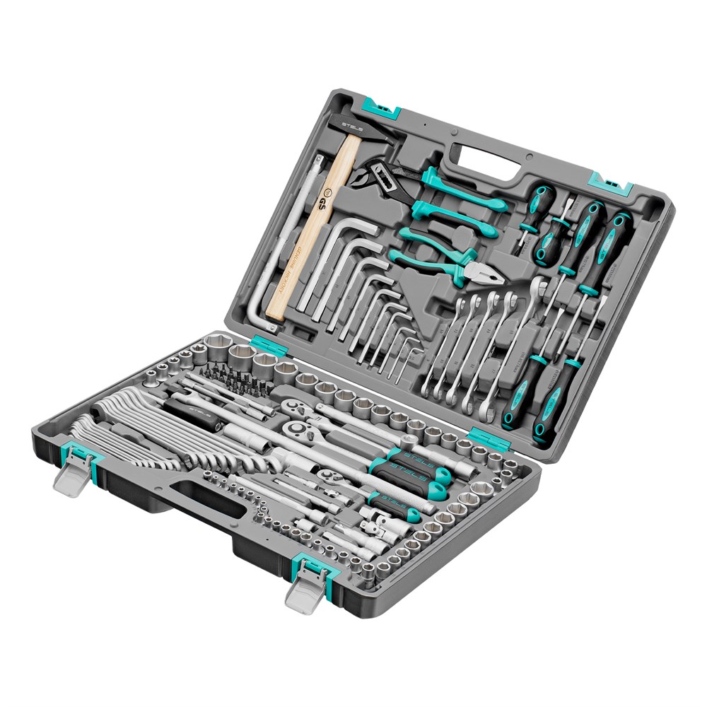 Набор инструментов, 1/2",3/8", 1/4", CrV, пластиковый кейс 142 предмета Stels