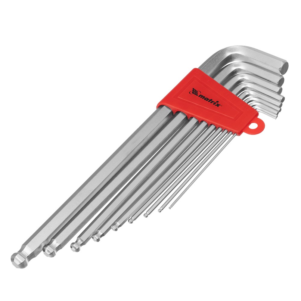 Набор ключей имбусовых HEX, 1.5-10 мм, CrV, 9 шт, экстра-длинные, c шаром, сатин Matrix