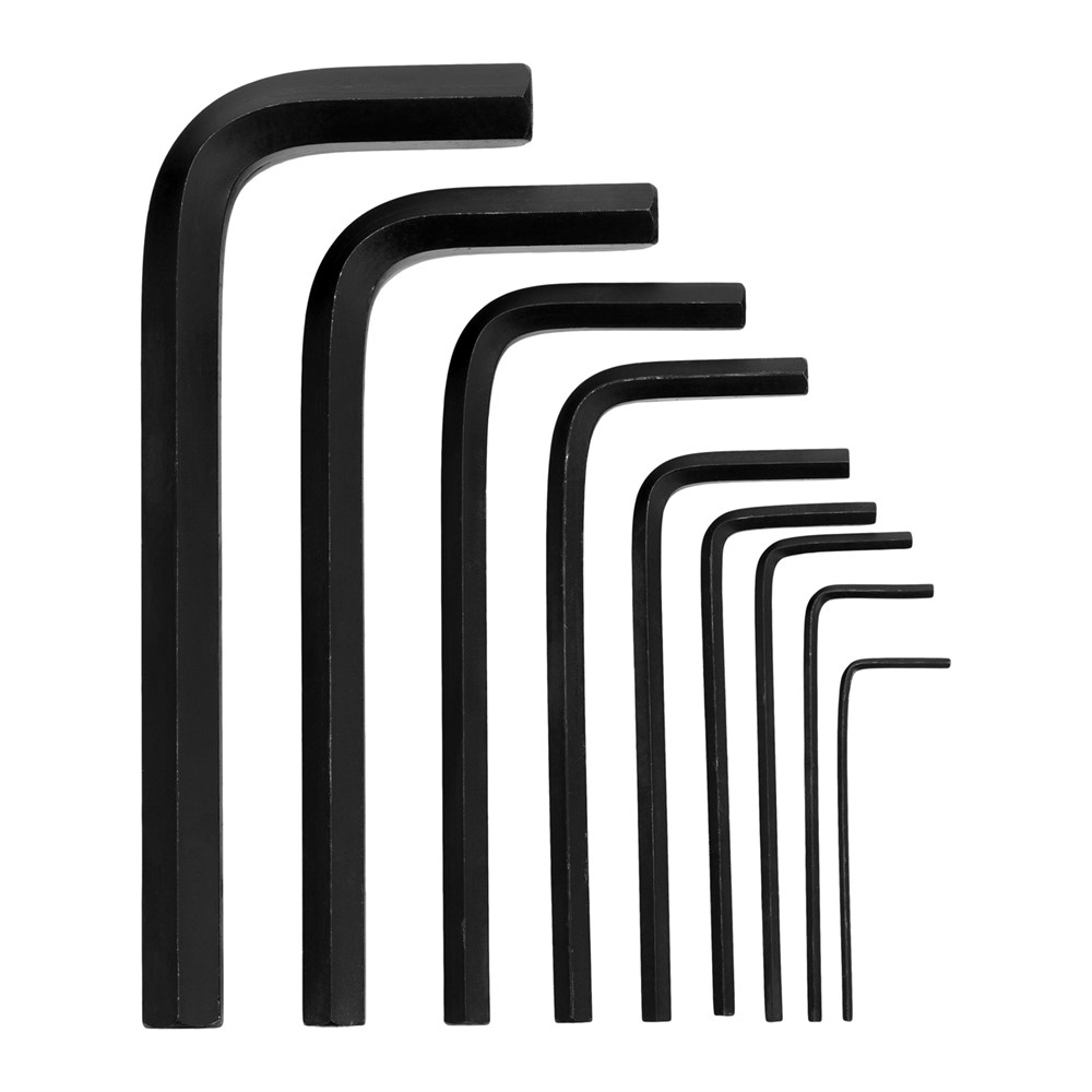Набор Matrix 11226 из 9 коротких оксидированных имбусовых ключей размером 1,5-10 мм, из стали CrV, используется для монтажа и демонтажа крепежа со шлицем HEX. Шестигранники наиболее часто применяются для закручивания мебельных евровинтов и ремонта велосипедов. Г-образная форма ключей позволяет использовать их длинные части в качестве рабочих для удобного доступа в труднодоступные места.