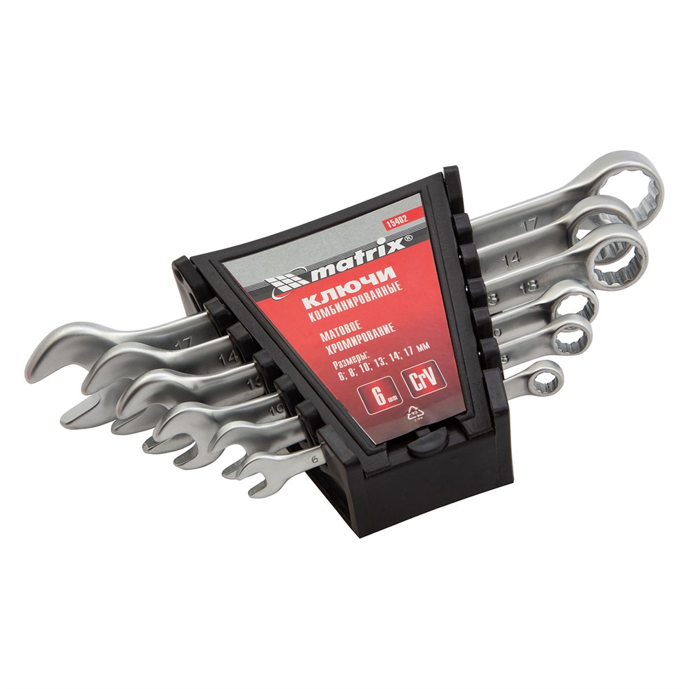 Набор ключей комбинированных, 6-17 мм, 6 шт, CrV, матовый хром Matrix