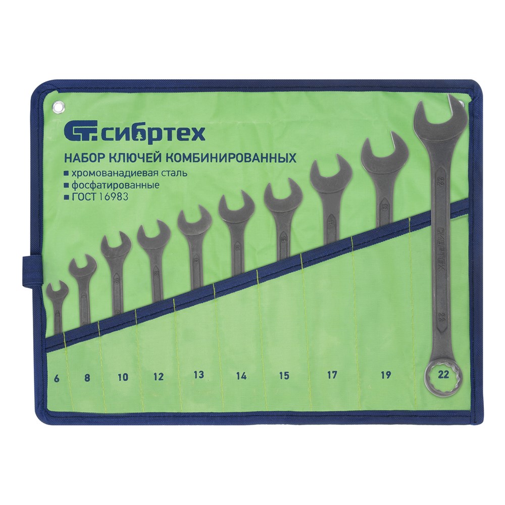 Набор ключей комбинированных, 6 - 22 мм, 10 шт., CrV, фосфатированные Сибртех
