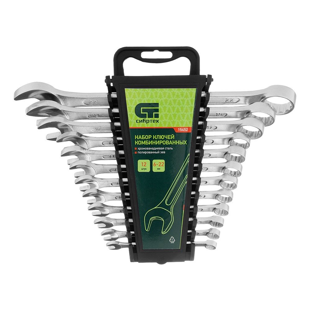 Набор ключей комбинированных, 6-22 мм, CrV, 12 шт Сибртех