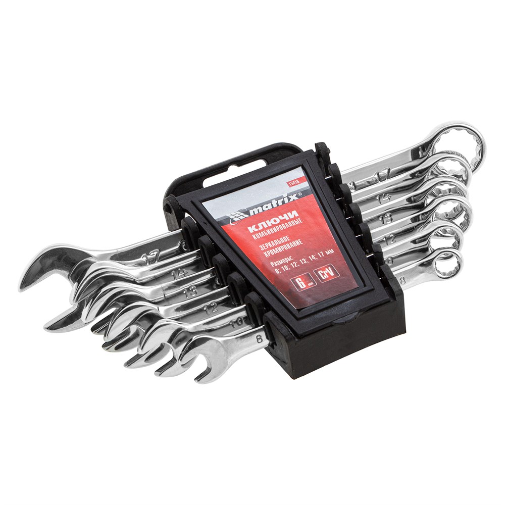 Набор ключей комбинированных, 8-17 мм, 6 шт, CrV, полированный хром Matrix