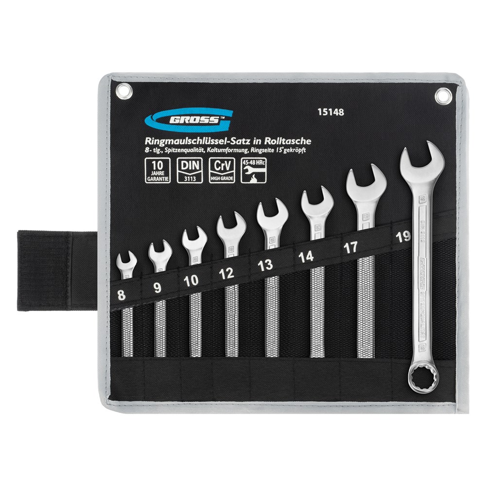 Набор ключей комбинированных 8-19 мм, 8 шт, CrV, холодный штамп Gross