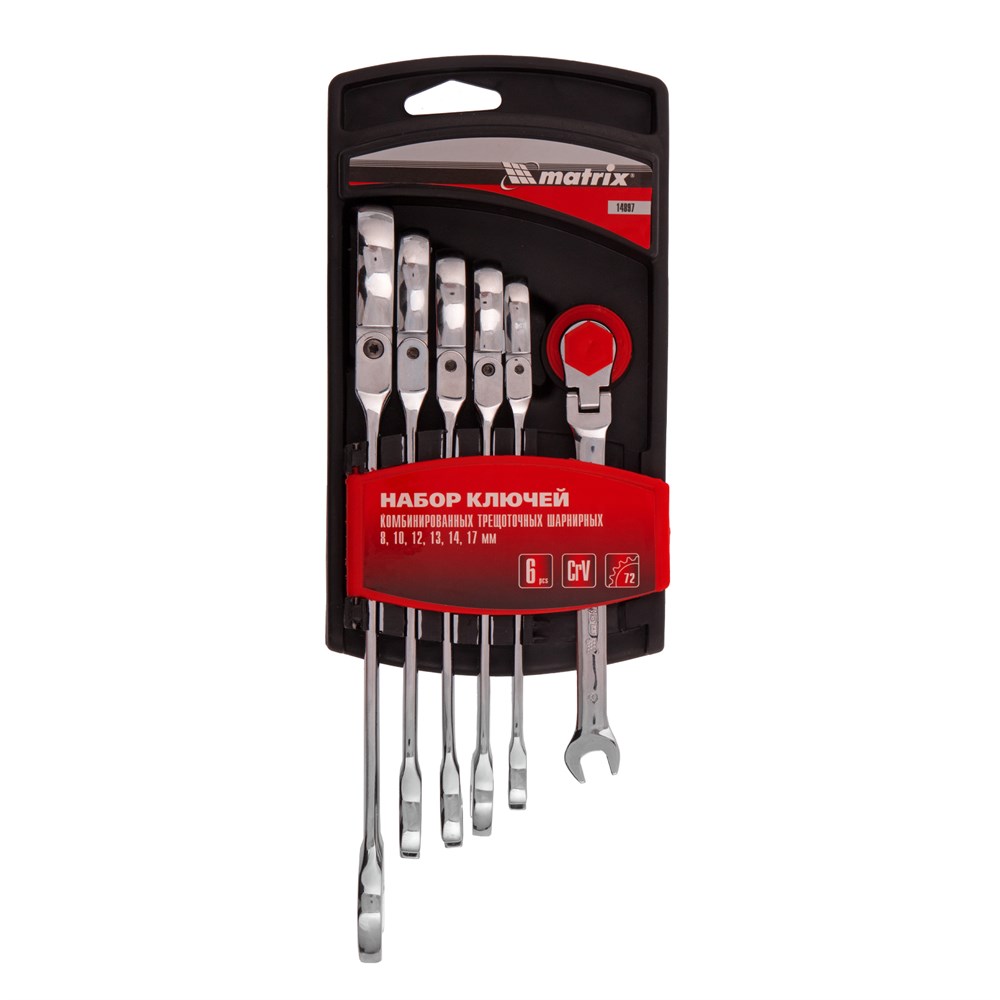 Набор ключей комбинированных, трещеточных шарнирных 6 шт Matrix