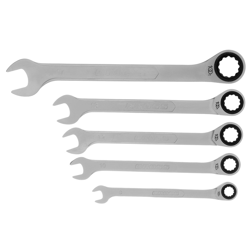 Набор ключей комбинированных трещоточных, количество зубьев 100, СRV, 5 шт, 8- 17 мм Gross