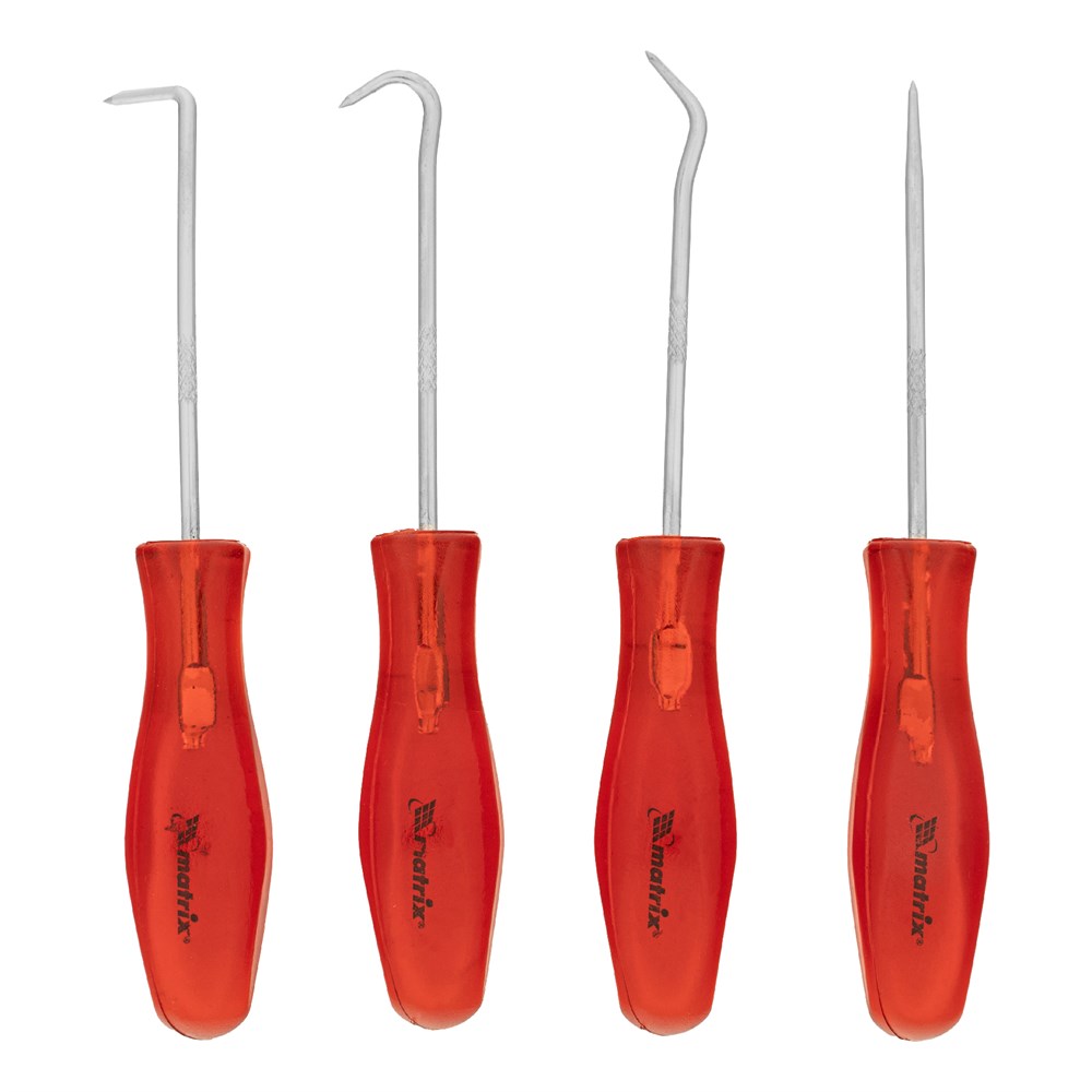 Набор крюков для слесарных работ Matrix 11761 состоит из 4 предметов длиной 155 мм — шила, полного и углового крюков, а также крюка на 90°. Набор позволяет решать разнообразные бытовые и профессиональные задачи: снимать уплотнительные кольца и сальники, размечать металлические детали, проделывать отверстия в коже, дереве и других материалах. Инструменты будут полезны при выполнении строительных, слесарных и столярных работ, пригодятся в автосервисе, а также дома или на даче.