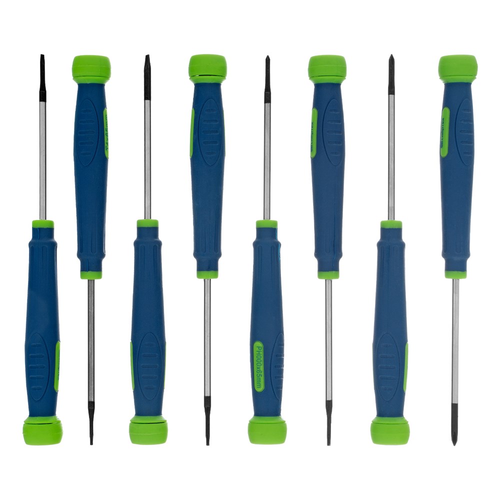 КомплектацияОтвертки для точных работ: T4, T5, T6, PH000, PH00, PH0, SL2, SL3 - 8 штПластиковый кейс - 1 шт