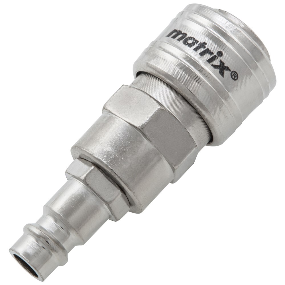 Набор переходников Matrix 57016 обеспечивает подключение элементов пневмосистемы с разным типом крепления. Он позволяет просто перейти с быстросъемного соединения на резьбовое и надежно соединить компрессор с пневматическим инструментом. Набор состоит из двух аксессуаров: ниппеля Rapid (Euro) типа «папа» и муфты Rapid (Euro) типа «мама» с диаметром внутренней резьбы 1/4″.