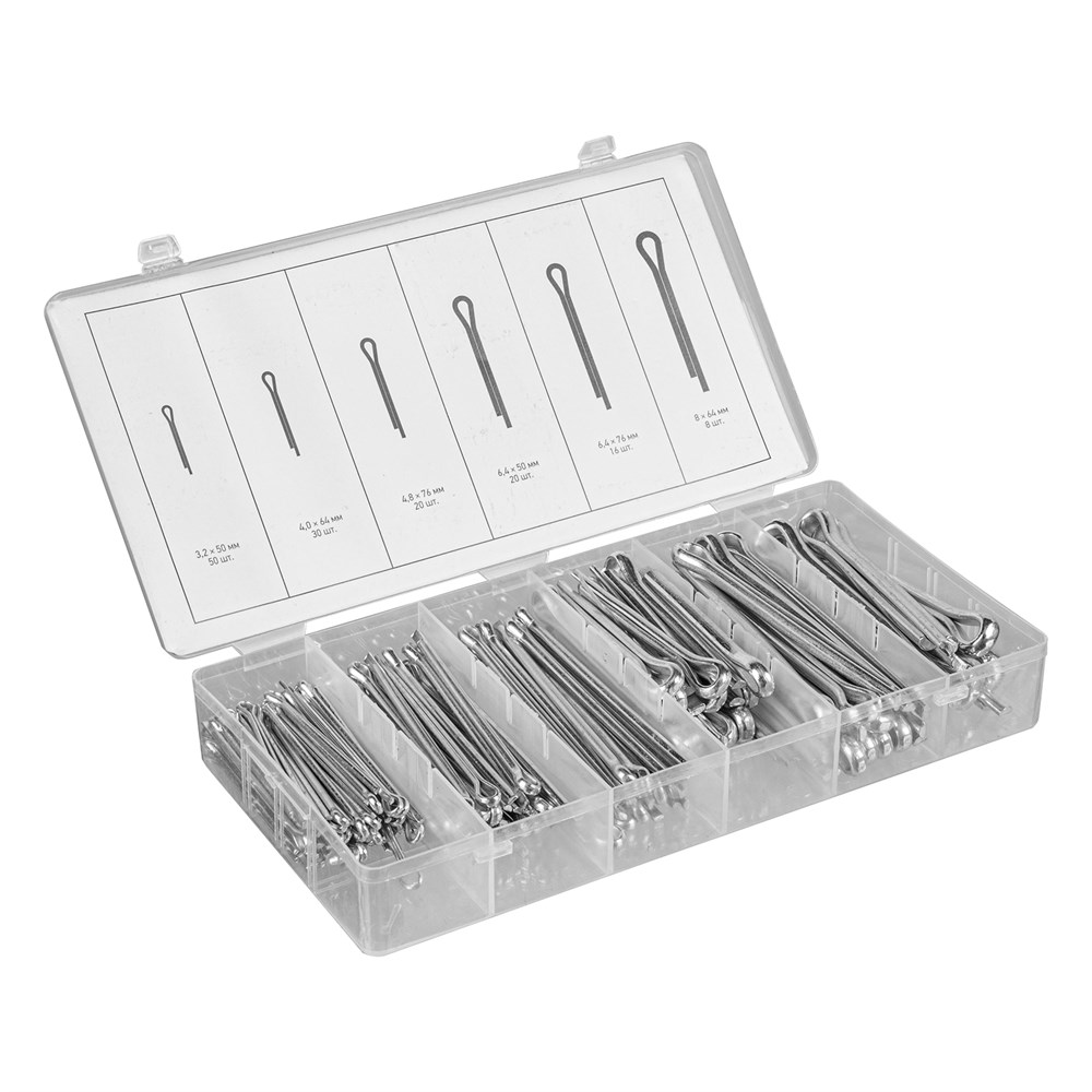 Набор шплинтов, S головки х L: 3.2 х 50.4 х 64, 4.8 х 76, 6, 4 х 25, 6, 4 х 76, 8 х 64 мм, 144 предмета Сибртех